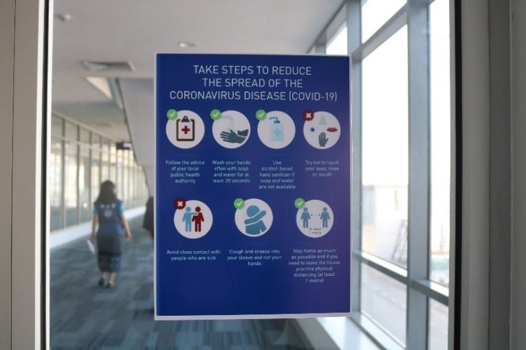 20201120-covid-19-air-travel-posters Once the passengers get off the plane, there are posters in the terminal to remind passengers on taking steps to protect themselves to reduce the spread of COVID-19.
